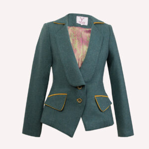 Im Jacquarddesign zeigt sich das edle Brautdirndl Theresa. Die Seidenpaspel am Halsausschnitt sowie eine Waschseidenschürze lassen das Dirndl zu einem romantischen Blickfang bei jedem Fest werden.